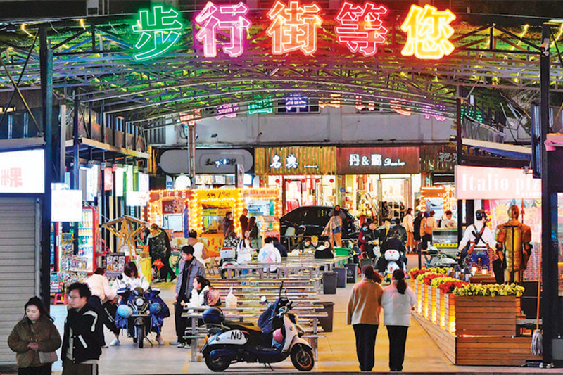 记者最近拍摄的石狮市步行街夜景。 近年来,福建泉州石狮市优化提升城市夜景,围绕夜间经济开展各类促消费活动,让城市“夜经济”更添活力。(魏培全)
