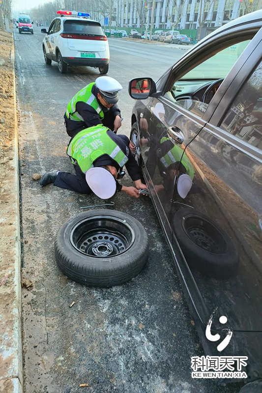 科技新闻网夏县电 3月8日,夏县公安局交通管理大队城镇中队民警巡查至温泉禹泽苑路段时,发现一辆晋MUS***的黑色小型轿车停在公路边。经询问,驾驶人史女士着急上班,不料前左轮胎突然爆胎,因更换轮胎的技术不熟练,无法行驶,心里十分焦急。