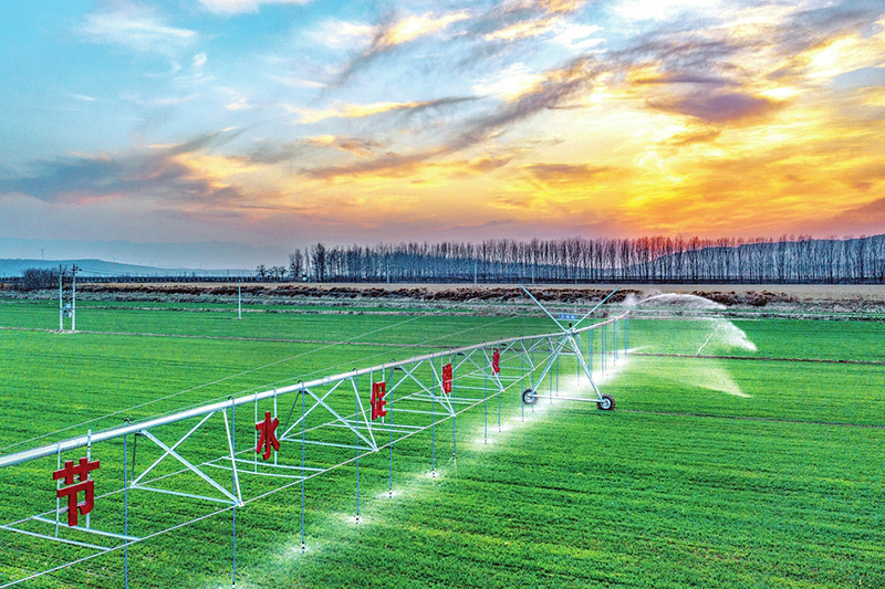 3月8日,在芮城县东垆乡黄河岸边的远鹏家庭智慧农场里,农民利用现代化的桁架淋灌机对冬小麦进行春浇。眼下正值冬小麦返青春浇时节,在运城市的田间地头,村民们紧抓农时,积极劳作,处处是春忙的景象。(薛俊 摄)