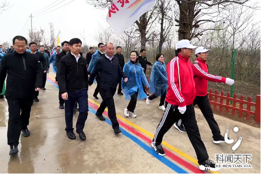 开幕式结束后,县委领导班子跟健步走代表团开起临猗开展了“梨园踏春、相约同行”健步走活动。矫健步伐伴随着欢快音乐引得现场几百名群众也一起参与到活动中。“雨中健步,沿着千米健步长廊,领略着大自然赋予的春意,真是让人心旷神怡。”参与群众开心说道。