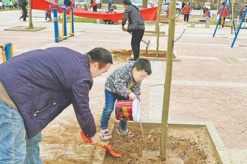 活动中,小朋友们兴致勃勃地争做植绿小使者,挖坑、扶苗、填土、踩实、浇水,忙得不亦乐乎。他们共栽植100棵法桐、200棵龙桑树,为建设美丽家园、改善生活环境增添新绿。(崔萌)