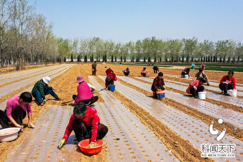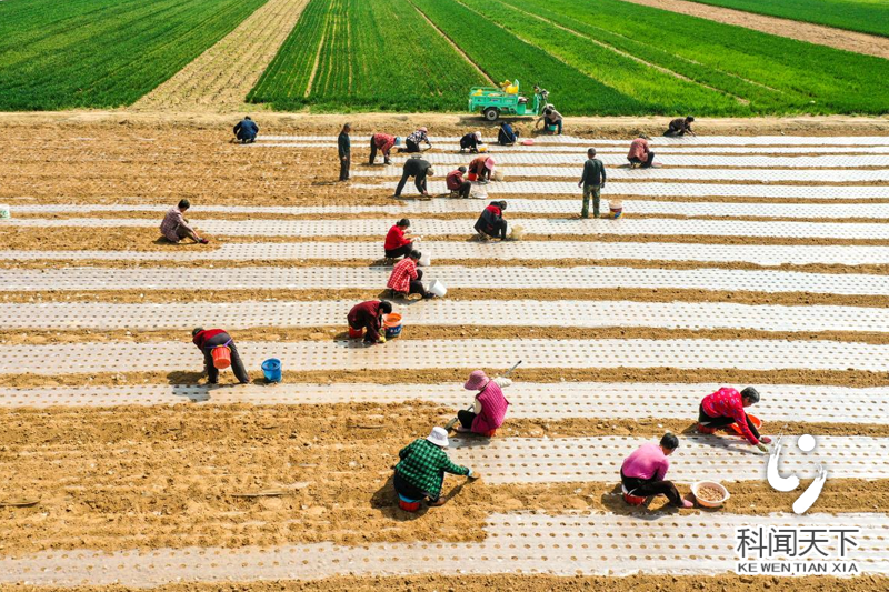 科技新闻网夏县电(张秀峰)3月27日,夏县南大里乡北大里村一个家庭农场抓住雨后良机,组织“钟点工”村民抢墒播种地黄中药材,绿色田野里呈现一幅美丽的“春耕图”。