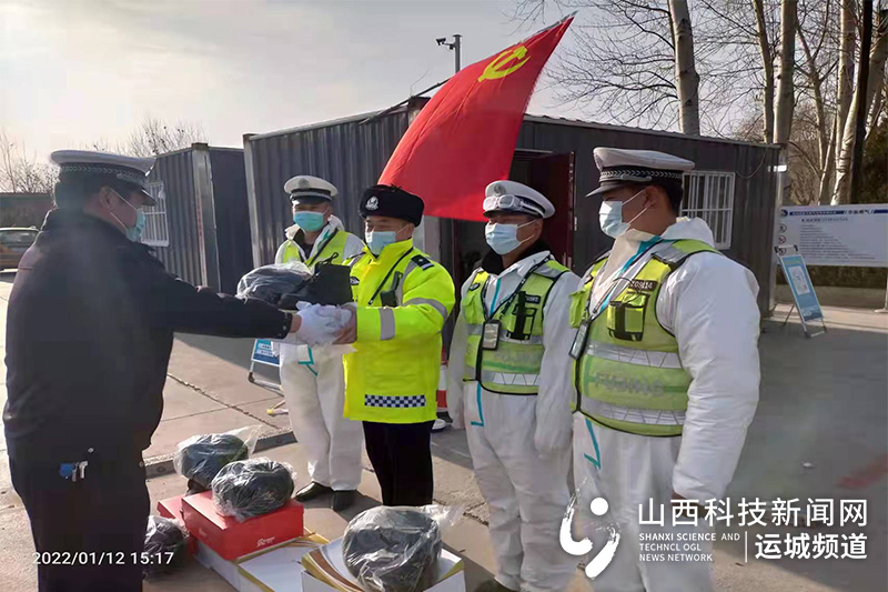 山西科技新闻网运城讯(牛慧霞) 一场突如其来的大降温,给一线疫情防控工作人员带来新的考验。元月12日,夏县公安局交通管理大队领导深入水头高速路口、庙前疫情防控检测点,看望慰问基层一线执勤民警。为一线执勤民警辅警送去了防寒棉衣、帽子、皮鞋等防寒装备。