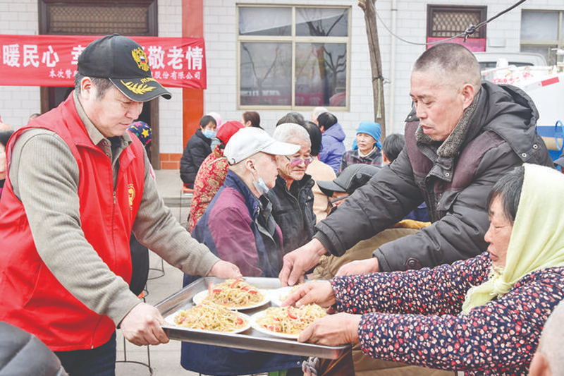 一饭一菜助老情,一锅一汤送温暖。志愿者们用心用情烹饪美味佳肴,为阳城村的老人做了四菜一汤,还有一碗大烩菜。爱心人士“油糕姐”张金霞也加入爱心团队,为老人现场炸油糕,金黄色的油糕满锅飞转,香味弥漫。一盘盘倾注着善心爱意的午餐,给老人们带来了幸福。任作栋老人说:“平时孩子们外出打工,忙于工作,这次活动,让老年人聚在一起,能吃到可口的饭菜又能聊家常,我们感到非常开心。”