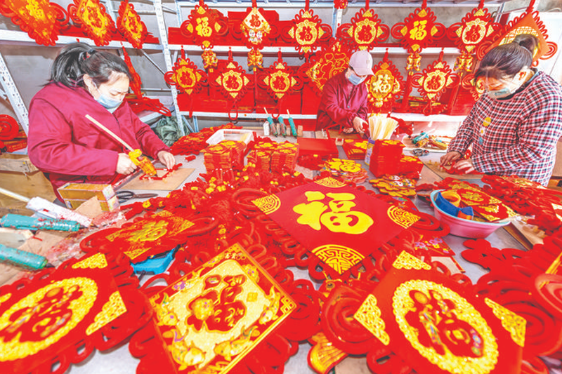 4月2日,垣曲紫曼工艺品制造有限公司的车间内,工人们在制作“福”字装饰品。 据了解,该公司是一家以手工制作旅游产品为主的文化企业,目前主要生产平安符、香包、中国结等22个系列、120多个品种的装饰品,通过线上线下双渠道,销往全国各地,年产值达500多万元,带动了周边妇女就近就业。(薛俊 茹雅)