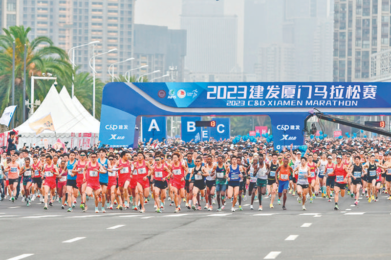 当日,2023厦门马拉松赛在福建厦门鸣枪开跑。