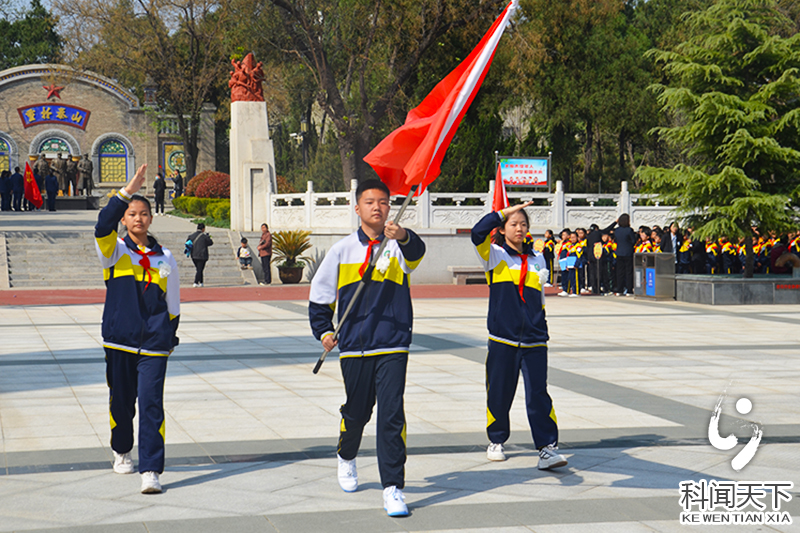 伴随着出旗曲,活动拉开序幕,在烈士纪念碑前,学生们聆听了革命先烈的英雄事迹,全体肃立,敬献花圈,沉痛默哀,深切缅怀英烈事迹。