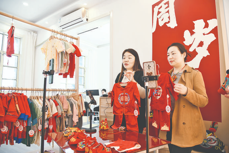 4月3日,闻喜县唐韵民间工艺有限公司工作人员通过网络直播,介绍婴儿吉祥布老虎系列产品。 近年来,闻喜县唐韵民间工艺有限公司开发出100余种婴幼儿主题布艺“老虎”。除传统的批发经营之外,该公司还利用各种线上销售渠道,将精巧的布艺作品销往北京、天津、上海等地。据了解,目前该村百余名有刺绣基础的农村妇女专门从事刺绣加工。(温徐旺)