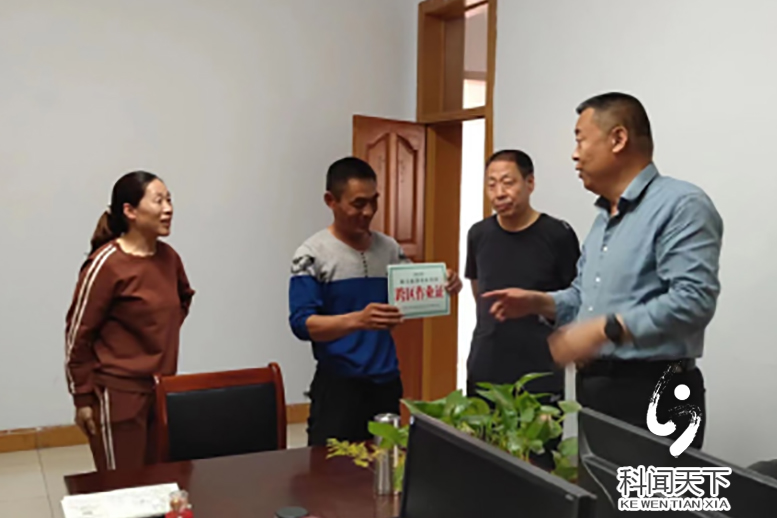 科技新闻网运城电(张梦茹)4月19日,盐湖区现代农业发展中心主任董起宏为金井乡西曲凡村农机手高耀荣发放2023年首个联合收割机跨区作业证,拉开了2023年联合收割机跨区作业证的发放工作。