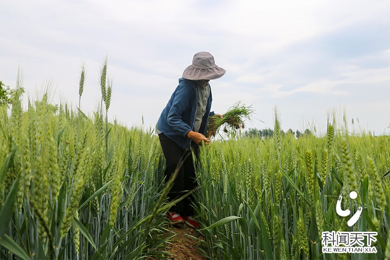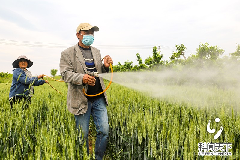 科技新闻网夏县电(张秀峰)2023年5月9日,山西省运城市夏县禹王镇李庄村粮农在田间操控小型机械为小麦喷洒"一喷三防"混合剂。