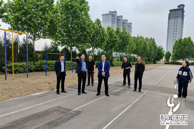 在学校操场,张朋林实地察看了学校操场具体情况,因操场跑道爆裂,严重影响学生体育开展,存在安全隐患。他要求学校结合实际,制定出改造方案,并对具体改造提出指导意见。