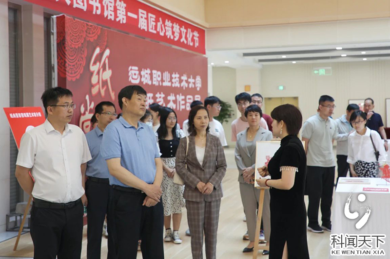 在图书馆,一行人参观了剪纸艺术作品展,详细听取了金牌剪纸艺术家胡天琪老师对所展作品的介绍,作品立意高远、别出心裁,呈现出鲜明的审美特征和文化意蕴。在胡天琪老师的讲解下,大家深入了解了中国传统剪纸的发展历史和实际现状,感受了剪纸艺术强大的生命力和不可磨灭的价值。
