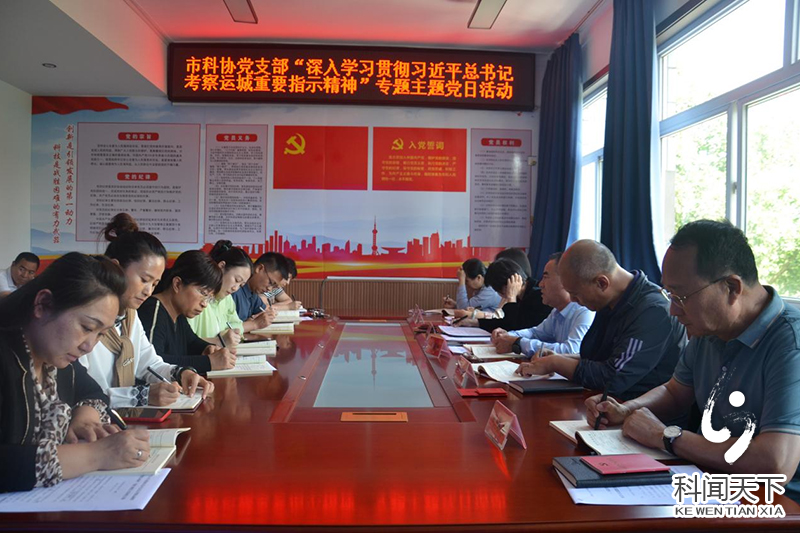 科技新闻网运城电(史卓凯)5月22日,运城市科协党支部“深入学习贯彻习近平总书记考察运城重要指示精神”专题主题党日活动。市科协党组书记马国跃主持会议并讲话,市科协全体党员、入党积极分子、群众代表参加。