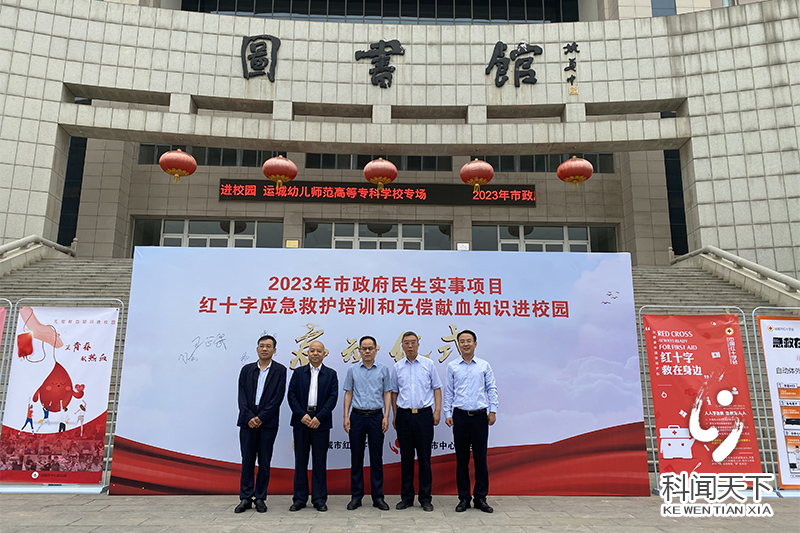 科技新闻网运城电(丁卫东)在全市上下全面学习贯彻习近平总书记考察运城重要指示、重要讲话的重要时刻,5月25日,2023年市政府民生实事项目——红十字应急救护培训和无偿献血知识进校园启动仪式在运城幼儿师范高等专科学校隆重举行,市政府副秘书长王正武,市幼儿师范高等专科学校党委书记常江雷,市卫健委党组成员、副主任程严,市幼儿师范高等专科学校纪检书记张新闻、副校长赵运兵,市中心血站站长姚江波等领导出席,运城幼儿师范高等专科学校部分教职工和学生、红十字会和中心血站培训师资、工作人员等共计200余人参加。仪式由市红十字会专职副会长闫乐主持。