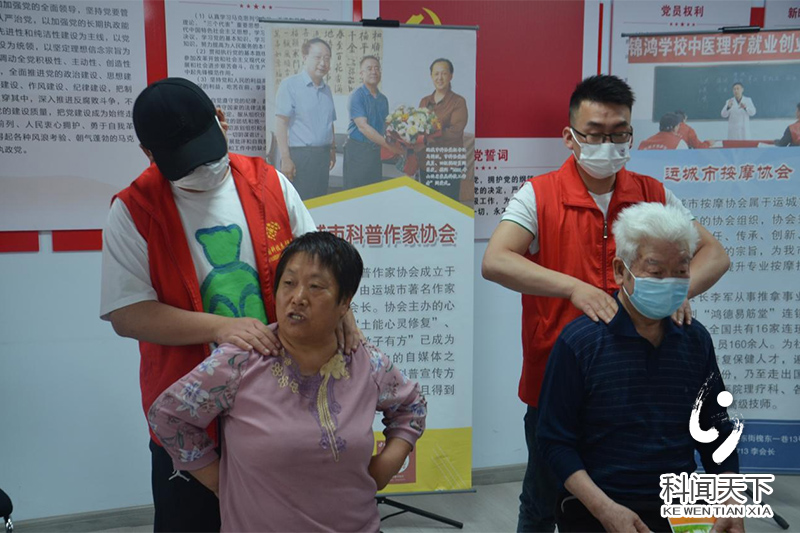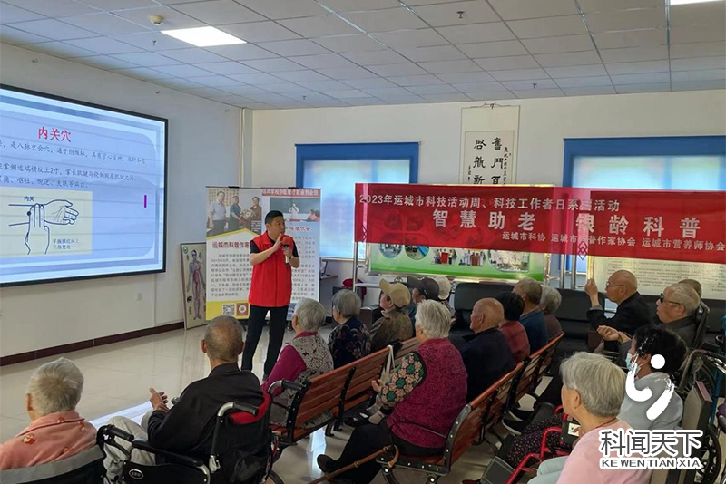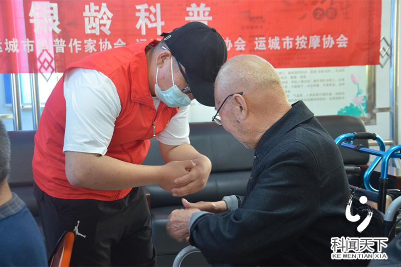 5月23日,科技志愿服务队走进盐湖区凤凰金秋敬老院,李军为敬老院老年人作了题为《中医穴位》按摩专题讲座,结合简便易学、安全有效适合老年人实际的中医穴位按摩,讲课中,他还通过示范,向老年人深入浅出介绍了穴位按摩中医养生方式,帮助老年人学会穴位保健,用通俗易懂的语言,现场示范穴位,指导老年人如何找准穴位进行按压,以达到日常保健的功效。讲座结束后,科技志愿服务队还为老年人发放了科普宣传资料并现场进行公益按摩深受好评。