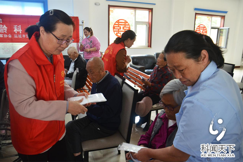 在盐湖区凤凰金秋敬老院志愿者为老人发放了科普宣传资料