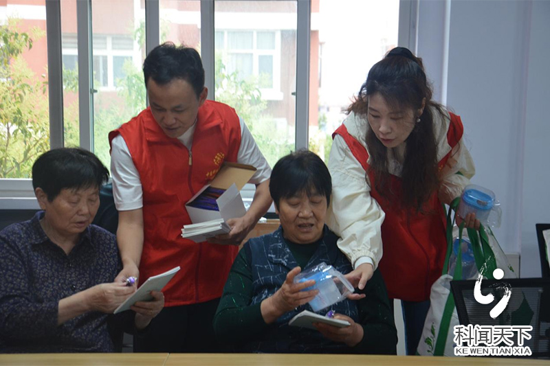 在盐湖城社区志愿者为老人们发放了科普宣传资料