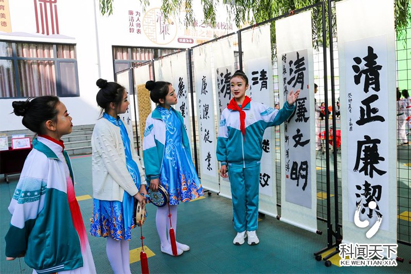 当天,该校小学生们尽情地表演了《红领巾心向党》、《清廉建设进校园》等18个精彩节目。演出现场,对小学生创作的清廉书画、剪纸、清"莲"系列陶艺作品进行了技艺展示,陶冶了小学生的精神情操,廉润每个孩子的心灵。