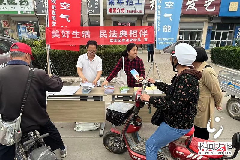 科技新闻网运城电(张梦茹)今年5月是第三个民法典宣传月。为深入贯彻落实党的二十大精神,深入学习宣传贯彻习近平法治思想,全面做好民法典宣传普及,根据中央、省、市、区2023年“美好生活·民法典相伴”主题宣传活动部署,盐湖区农业农村局法规股于2023年5月份在全区开展第三个“民法典宣传月”活动。在各乡镇利用集会人员集中宣传效果好的优势,悬挂条幅5条、发放民法典宣传画册、读本等资料500余份,组织群众自主学习民法典知识,不断提升基层群众法治素养。