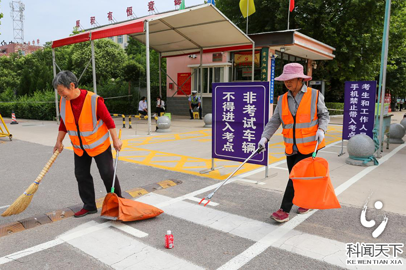 6月7日,在夏县二中考点,中科国通环卫工及时打扫卫生,创优高考环境。