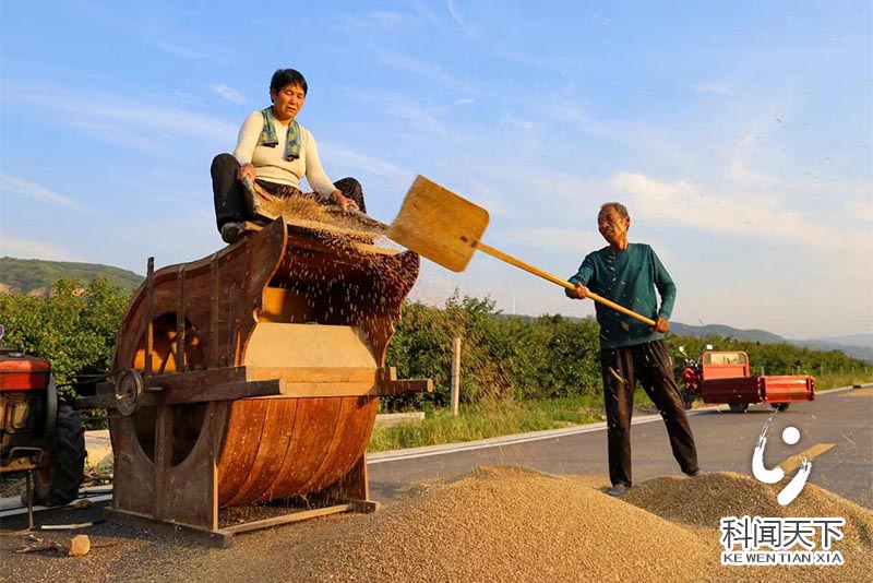 2023年6月7日,山西省运城市夏县庙前镇上埝底村村民在使用传统扇车扬麦子。