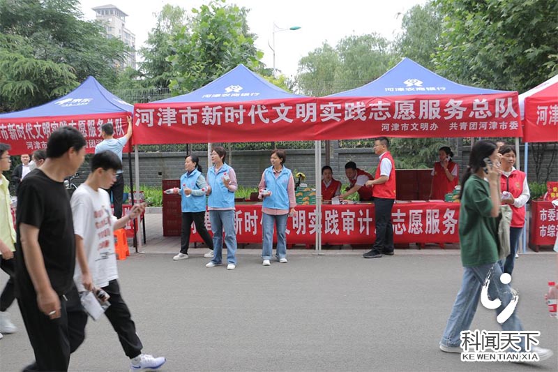 科技新闻网河津电(黄彩霞 郭世鹏 陈梅)为积极践行社会责任,深入推进“我为群众办实事”实践活动,助力莘莘学子顺利高考。近日,河津市审计局开展了助力高考志愿服务活动,为高考考生、陪考家长送去关怀、帮助与祝福。图为该局志愿者服务人员给高考学子和家长免费发放饮用矿泉水和清凉油等防暑降温物品。