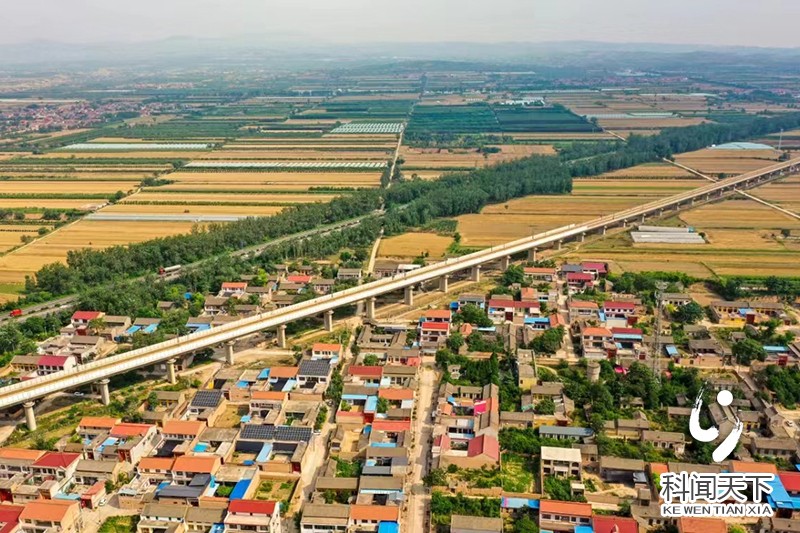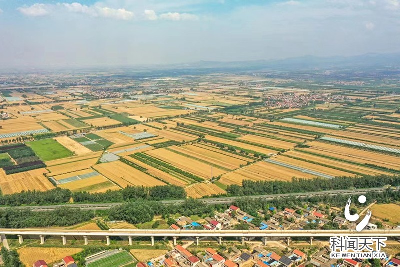 科技新闻网夏县电(张秀峰)6月12日,空中俯瞰夏县水头镇广袤田野,金色麦田、碧绿树木、多彩民居与穿境的高速公路、空中高铁交相辉映,展現出生机盎然的社会主义新农村田园美景。