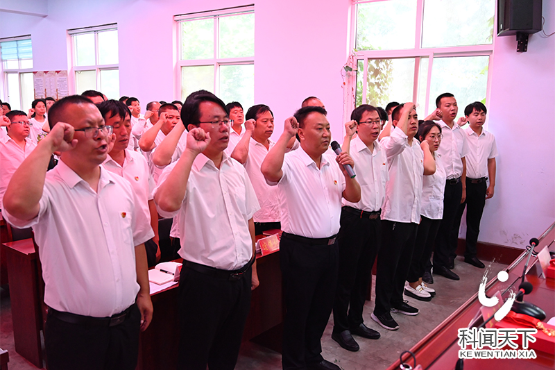 镇党委书记赵崇保带领全体党员重温入党誓词。铿锵有力的誓词,表达了大家对党的无限忠诚、对党事业的无限热爱,以及听党话、感党恩、跟党走的坚定决心。