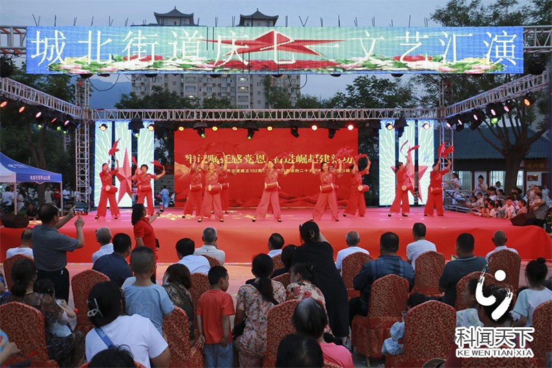 在激昂的腰鼓声中,演出拉开了帷幕。由广大党员干部群众自行组织编排的节目轮番上演,精彩纷呈。舞蹈《绣红旗》造型多变,动作整齐,展现出昂扬向上的精神风貌。城北街道到村(社区)工作大学生编排的朗诵《党的赞歌》、舞蹈《新青年》,表达了年轻干部扎根基层、甘于奉献的决心和信心;蒲剧《沙家浜》《杜鹃山》、器乐联奏《太阳最红》《孤勇者》和快板、小品等节目得到了现场群众的阵阵掌声。
