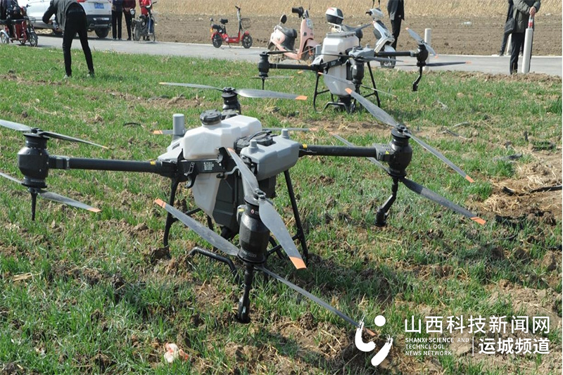 随后,技术人员对选调的10架大疆无人机新机型、4架极飞无人机和性能优良的高地隙植保机、淋灌机等机具,以及山西河东雄风农机有限公司新研制的玉米大豆带状复合免耕施肥精量播种机等新机型进行现场演示,并从机器性能、主要技术参数、操作方法及作业要点进行了详细讲解。