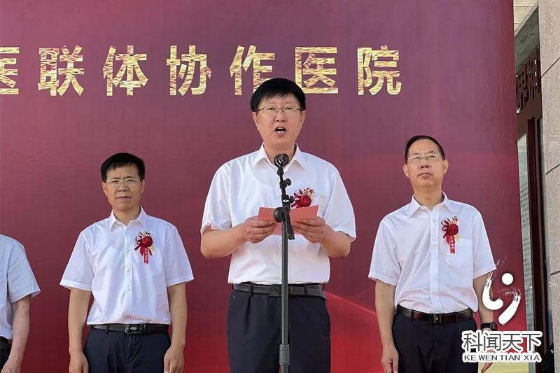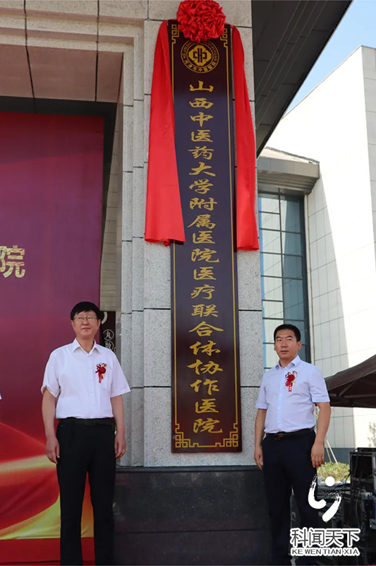 山西中医药大学附属医院院长郝旭亮,河津市市委常委、常务副市长闫新善为“山西中医药大学附属医院医疗联合体协作医院”揭牌