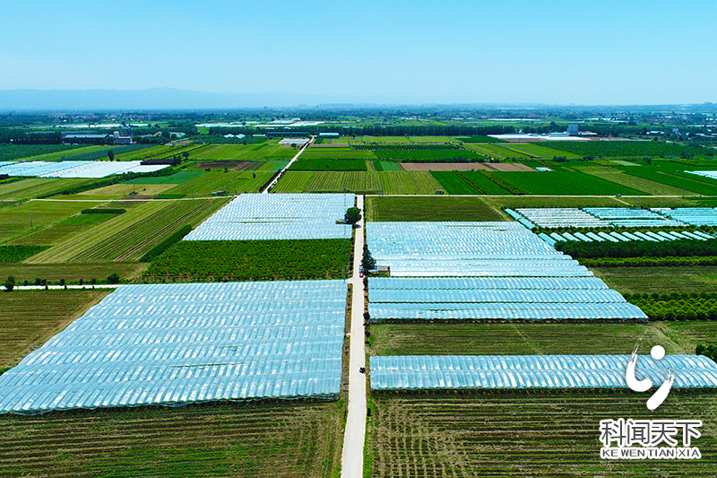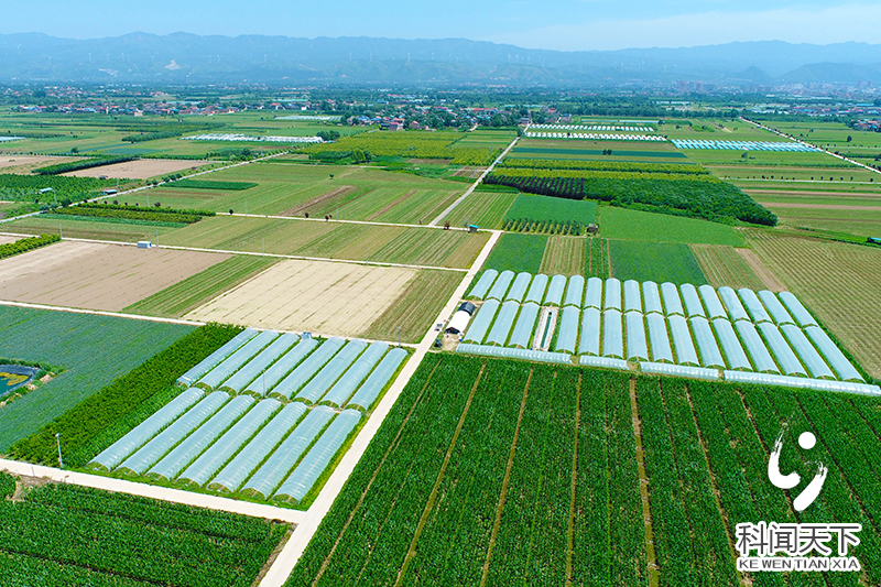 科技新闻网夏县电 近日,航拍夏县禹王镇禹王村的广袤农田,整齐连片,阡陌纵横,农作物绿意盎然,一块块色彩分明的农田成为自然“调色板”,一排排大棚镶嵌在绿色田野中,俨然一幅美丽田园画卷。