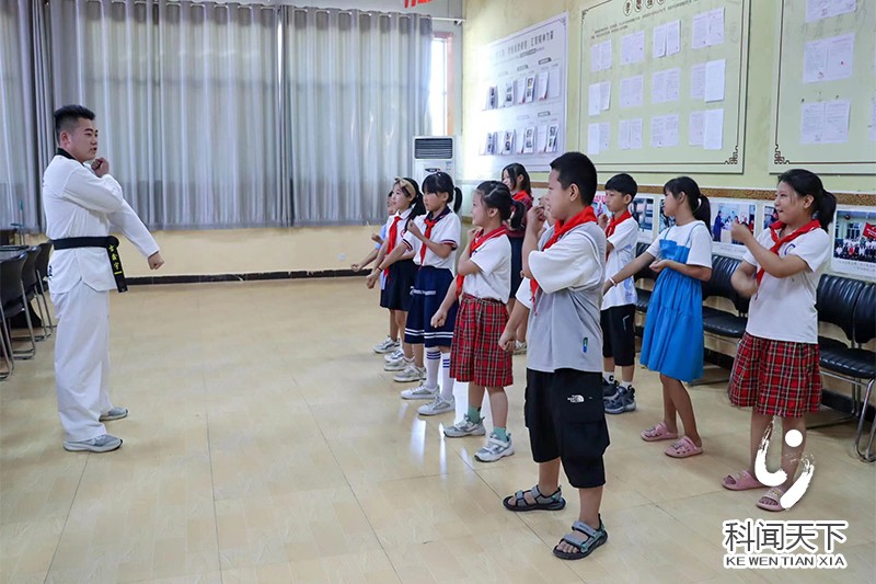 鸣奏青春旋律,抒写健身乐意。实践团成员教导雷家坡村的小学生们跆拳道,前踢、下劈、横踢……一个个动作都格外标准,汗水浸湿了孩子们的衣服,一招一式,一拳一脚都格外整齐,大家感受着汗水的快乐。