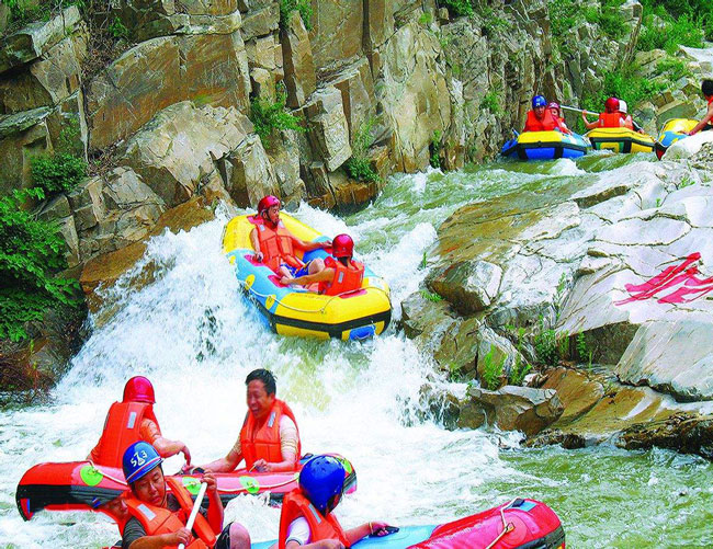 架桑漂流是三晋规模最长的峡谷漂流之一,漂流河道九公里长 时长约3小时,途经焦赞磨刀石、逍遥滩、张飞挡关、二郎滩、龙门、虎门、石门、将军门、孟良谷、青龙潭、好汉坡等十余处景点,游客可乘橡皮舟一路乘风破浪、中流击水,浪遏飞舟,穿梭于翠岑幽谷之间、尽享大自然的美好风光。漂流热线:13467257775