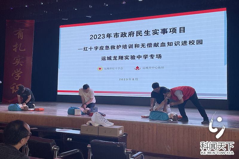 科技新闻网运城电(丁卫东)在全市大专和中小学开展应急救护和无偿献血知识培训是2023年市政府的一项重要民生实事,为进一步扩大应急救护知识和技能的覆盖面,8月4日,运城市红十字会和市中心血站联合为运城龙翔实验中学的100余名教师开展应急救护培训和无偿献血知识普及。