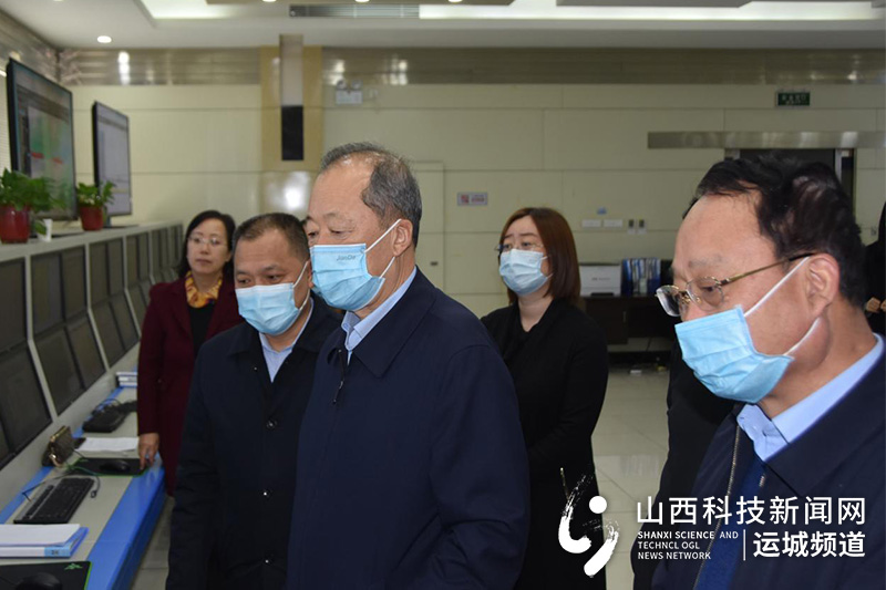 运城市委常委、副市长董旭光(左三)在气象大厅检查指导工作