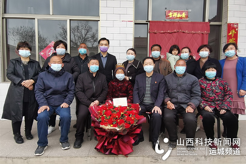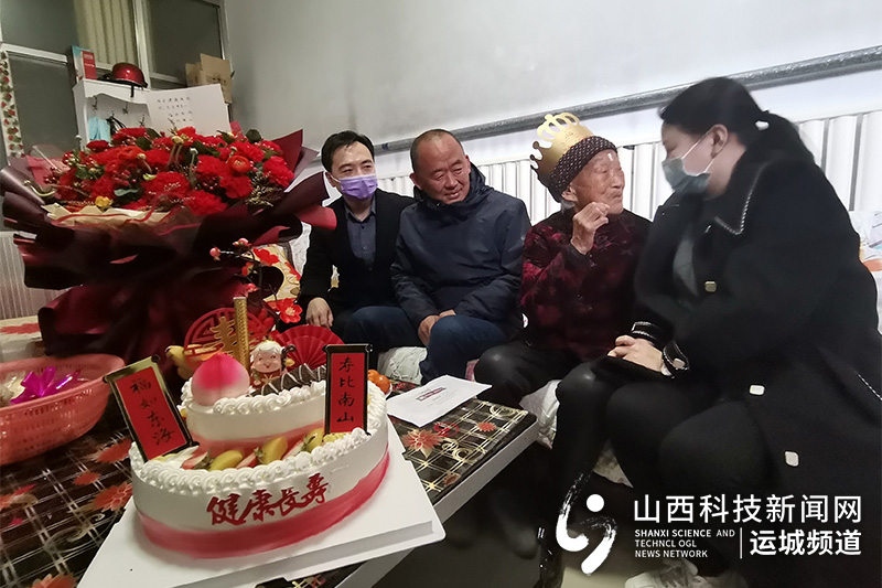 山西科技新闻网运城讯 3月24日,是绛县10位百岁老人最年长者、绛县郝庄乡永青村王玉秀老人的108生日。让老人没有想到的是,当天上午9点多,绛县健康医院院长王全民带着骨科主任张磊、护士长谢保红,与郝庄乡卫生院院长王红卫一起来给她过生日,给她送上蛋糕和一束108朵郁金香,祝愿她福如东海、寿比南山。
