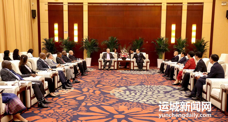 10月22日,市委书记丁小强会见出席第七届山西(运城)国际果品交易博览会的外宾。摩尔多瓦驻华大使馆全权大使杜米特鲁·贝拉基什、多米尼加驻华使馆公使萨穆埃尔·卡斯特罗、乌干达驻华大使馆公使欧文多·穆卡加、尼日利亚驻华大使馆公使卡匹欧·伊沙库·伊斯雷尔等11个国家驻华使节出席。市领导陈杰、乔登州、董旭光参加。