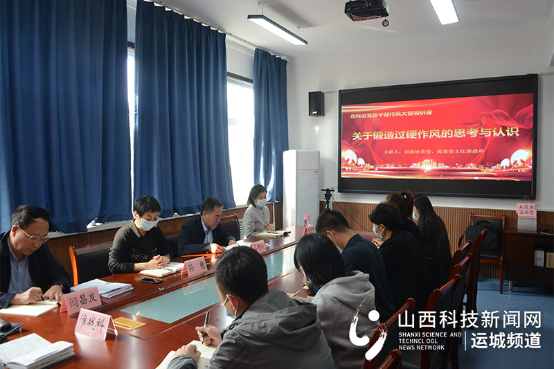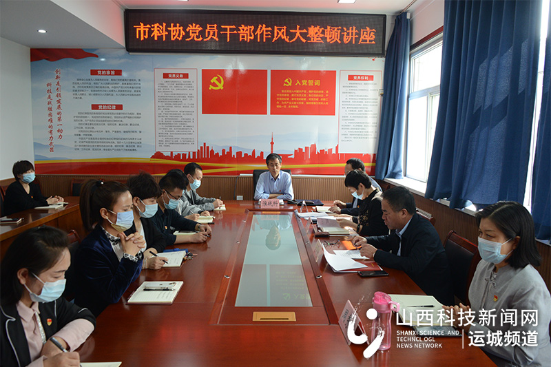 山西科技新闻网运城讯 为强化党员干部工作作风建设,2022年4月13日,运城市科协举办党员干部作风大整顿专题讲座。邀请运城市政协常委、提案委主任淮战科作专题辅导报告,市科协党组书记马国跃、主席孙艳以及其他干部职工参加。