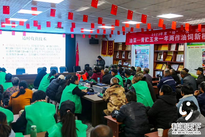 图③县农业专家给学员讲授油菜、青贮玉米轮作新模式。