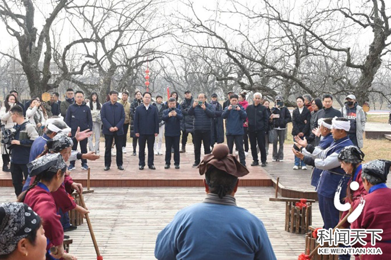 在稷山国家板枣公园,王安禄一行观看了国家级非遗展演《高台花鼓》《高跷走兽》、省级非遗展演《拳板舞》、稷山老调《敬稷王》,与非遗传承人及基层文艺人员沟通交流,详细了解该县深厚的历史文化底蕴和丰富的群众文化成果。