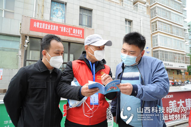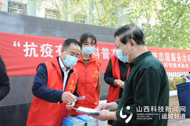 运城市科协党组书记马国跃为过往群众发放《新型冠状病毒肺炎防疫手册》