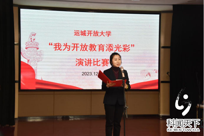 科技新闻网运城电(史卓凯) 为深入开展学习贯彻习近平新时代中国特色社会主义思想主题教育,进一步提升广大教职工献身开放教育的激情和热情,打造令社会认可、让学生满意的开放教育教师队伍,提升运城开放大学教学管理服务水平,学校党总支组织开展了“立足岗位做贡献”系列活动。开放大学于2023年12月14日举办了“我为开放教育添光彩”演讲比赛。运城开放大学党总支书记孙迎东,副书记、校长王亚香出席活动。