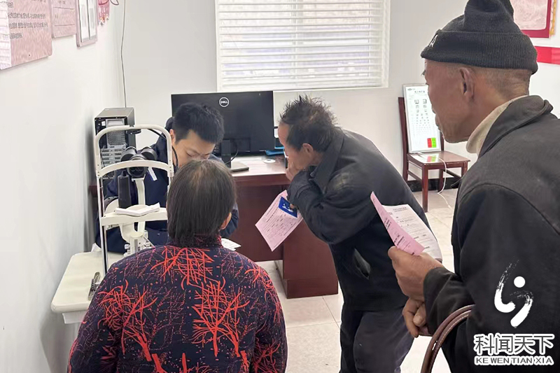 科技新闻网夏县电 12月23日,运城市爱尔眼科医院医生在夏县祁家河乡为中老年人免费检查眼底部情况。