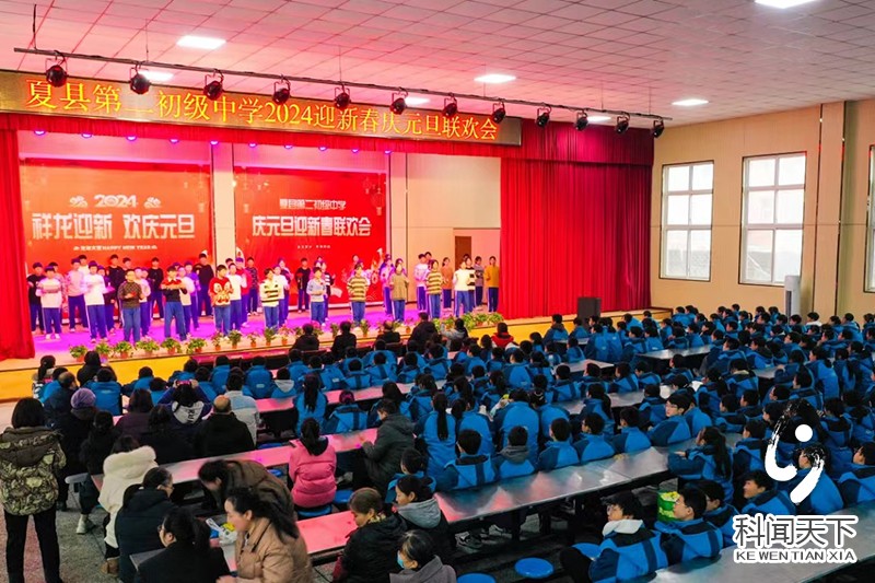 科技新闻网夏县电 2023年12月29日,山西省运城市夏县第二初级中学举行"迎新春 庆元旦"联欢,师生们自编、自导、自演的歌舞、小品、三句半、课本剧、诗朗颂等26个文艺节目依次登台展演,欢欢喜喜迎新春庆元旦。(张秀峰 张浩)
