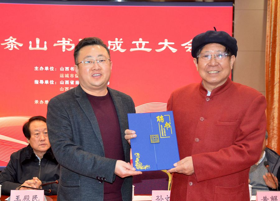 会上,运城市文化和旅旅局政策法规科科长孙文峰为李安刚教授颁发了条山院长聘书并为条山书院授牌。他强调了条山书院成立的重要意义,并表示将全力支持书院的发展。李安刚院长在接受聘书后发表了致辞,他表示将全力以赴,为条山书院的发展贡献自己的力量.