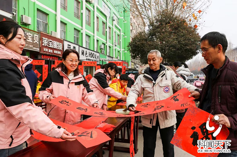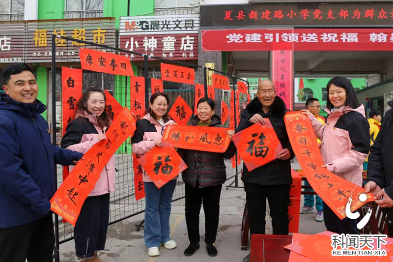 科技新闻网夏县电 2月6日,龙年春节临近,运城市夏县新建路小学党支部开展"我为群众送春联暖心志愿服务活动",党员教师和书法爱好者小学生,挥毫沷墨,把书写的一副副春联免费送给群众,迎春接"福"。(张秀峰)