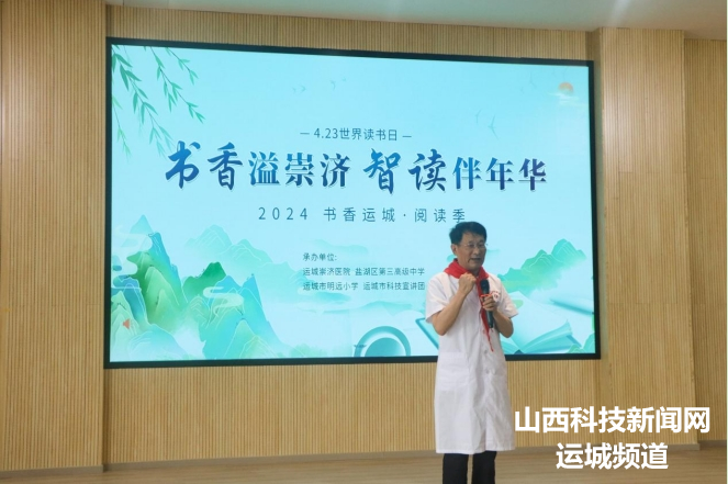 山西科技新闻网运城讯 4月22日,在第29个世界读书日来临之际,由运城崇济医院、运城市盐湖区第三高级中学、运城市明远小学、运城市科技宣讲团共同组织的“书香溢崇济 智读伴年华”读书分享活动,在崇济医院举行。