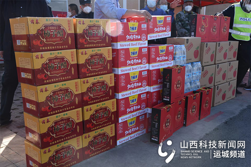 山西科技新闻网运城讯(李云岗)5月1日上午,芮城县政协委员、芮泰食品有限公司经理杨永民携手企业员工一行5人,在政协副主席赵芮军,秘书长单明等人的带领下,深入芮城东高速口和圣天湖疫情防控卡口,看望慰问抗疫一线工作人员。为疫情防控一线工作人员送去了芮泰柿子醋,苹果、方便面、矿泉水等价值6000余元的慰问品,送去了政协和企业对一线防疫人员的关心关爱。