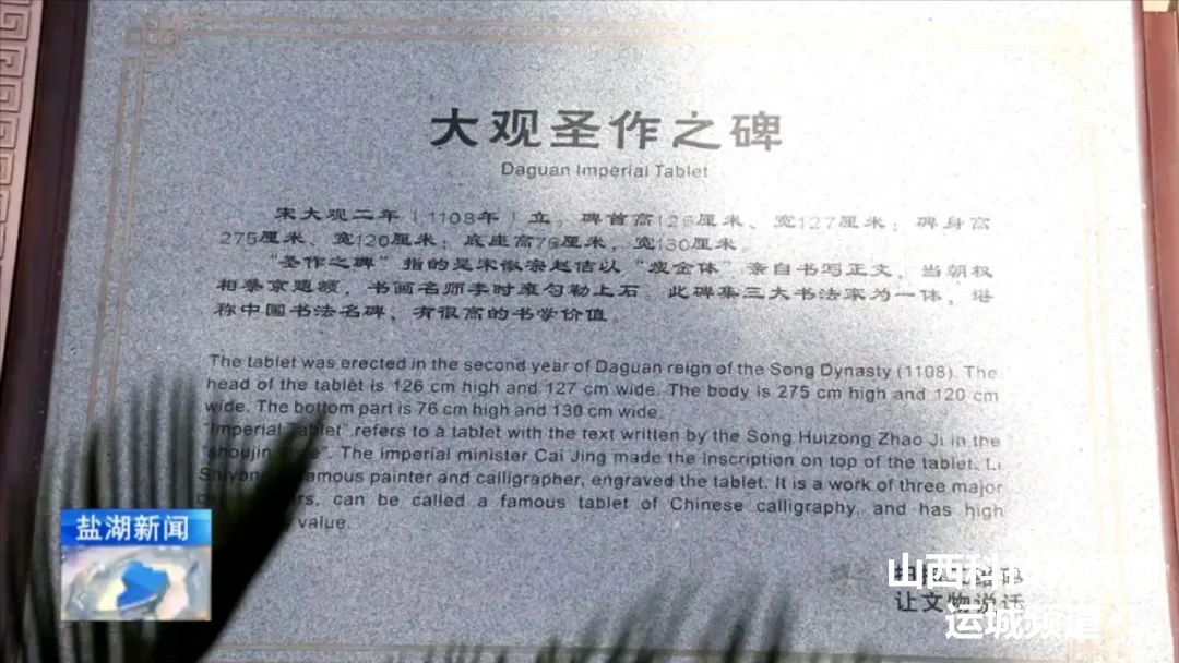 后面部分主要体现的是咱们的《大观圣作之碑》,是宋徽宗所写的碑文,当时的宰相蔡京写碑的额头,当时的书法名家李时雍把它勾勒在石上,所以也是三大书法名碑,里面用的是瘦金体所写,所以说好多书法艺术家喜欢来这看瘦金体,它是1984年的时候从安邑文庙移过来的。